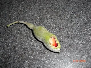 Close-up of a tree that had larger, greener pods- these have bigger seeds but were less developed.